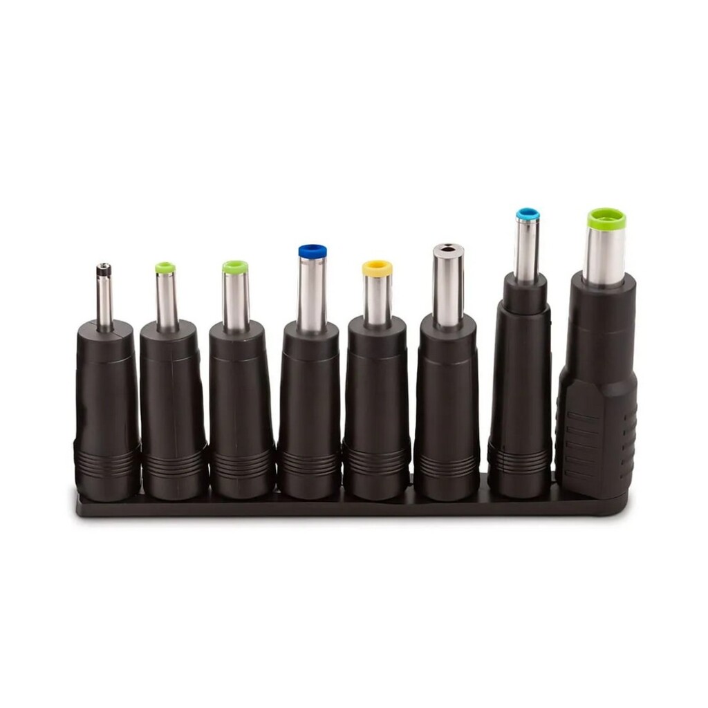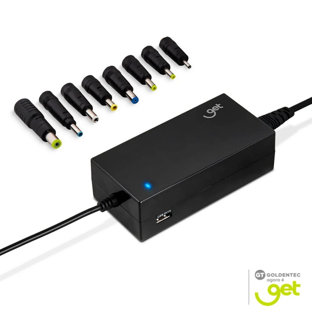 - Com 90W de potência, ele acompanha 8 conectores diferentes e entrada USB, oferecendo compatibilidade com diversos modelos de notebooks e permitindo carregar o smartphone simultaneamente.
