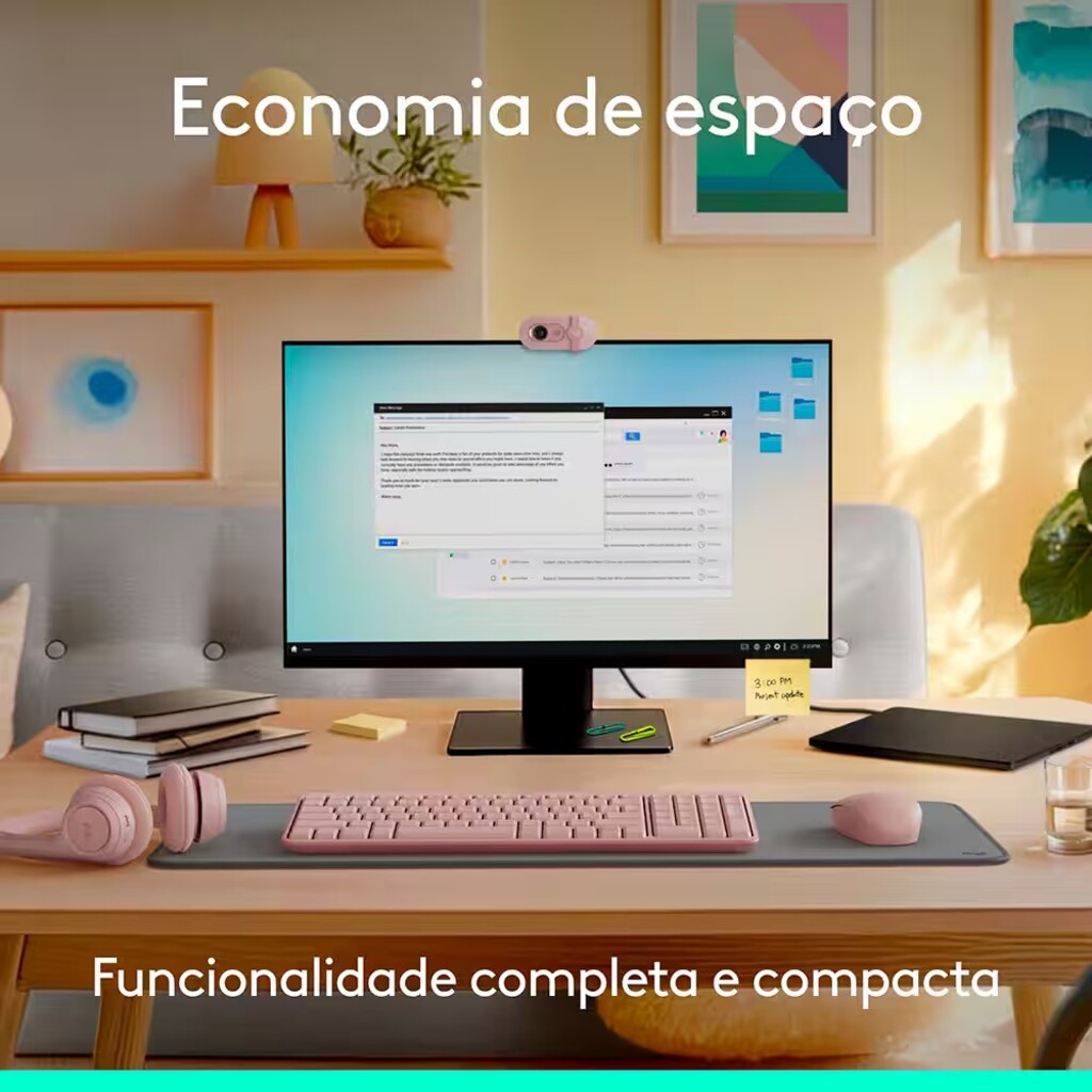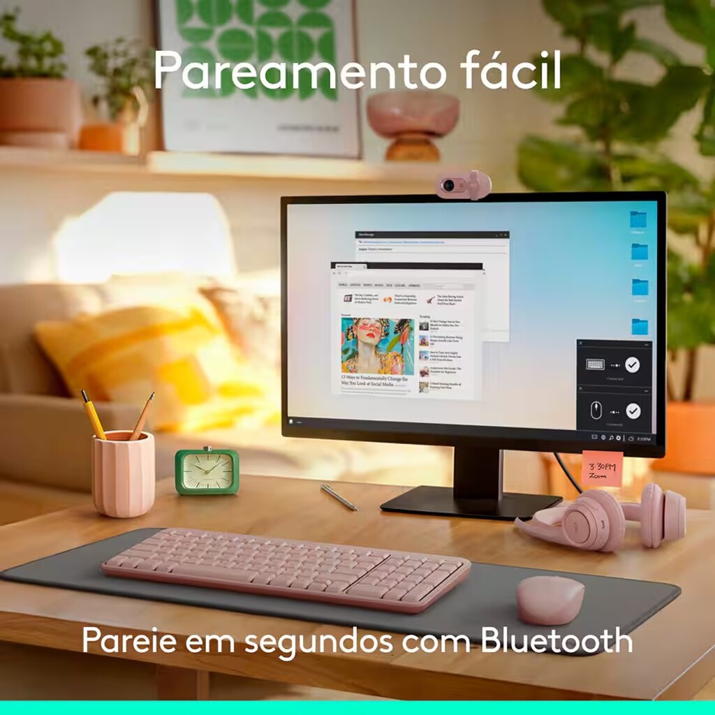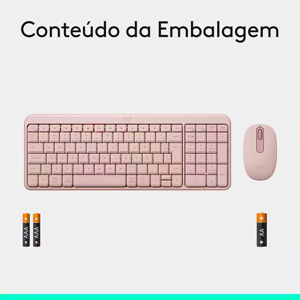 Kit Teclado + Mouse sem Fio Logitech MK250 Rosa - 920-013518