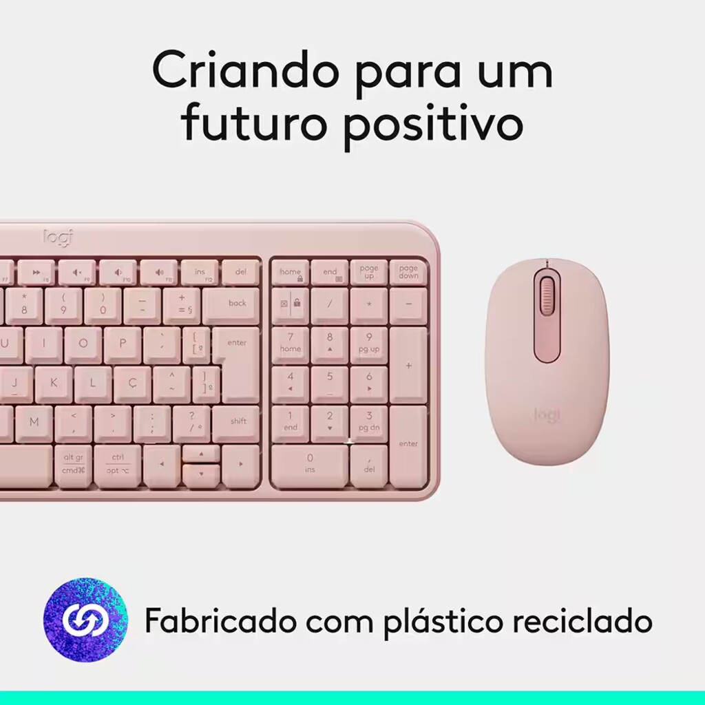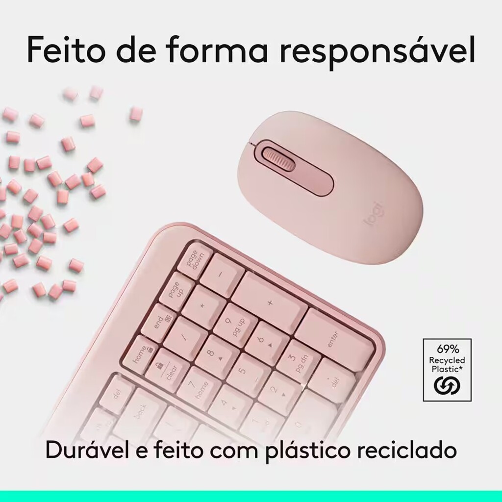 - Conecte-se facilmente com o MK250, uma combinação simples, completo, sem fio e feito para durar com peças de plástico que utilizam no mínimo 64% de materiais reciclados.