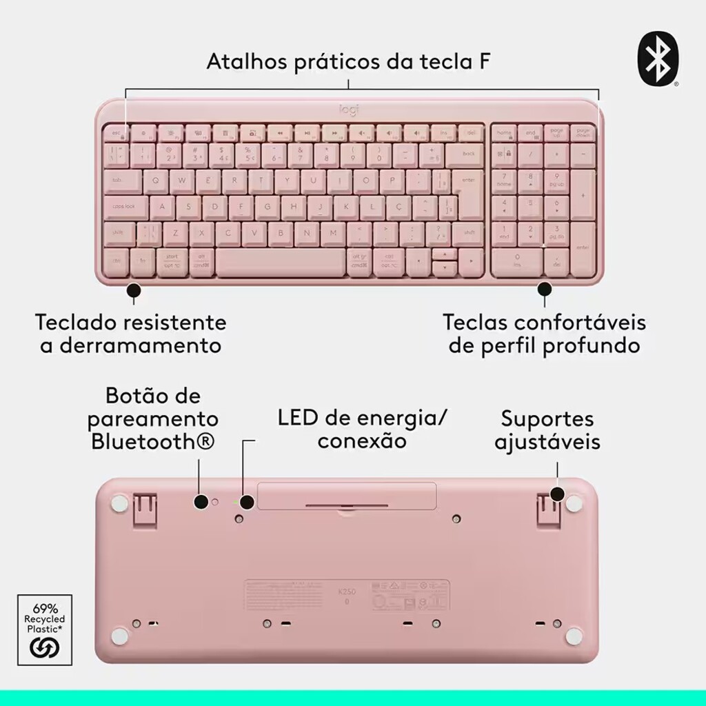 - Tecnologia sem fio do teclado: Tecnologia Bluetooth® Low Energy