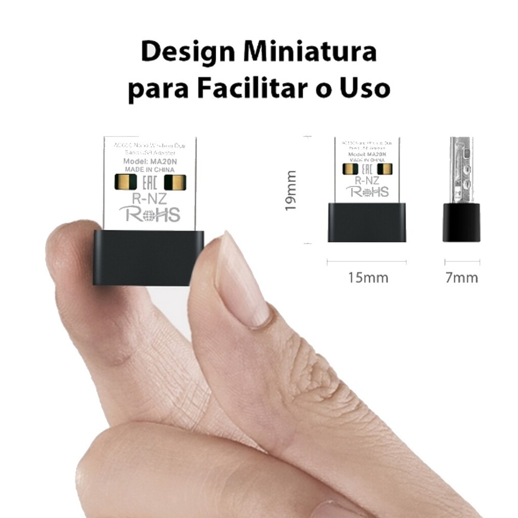 Conteúdo da Embalagem: Adaptador USB Wireless Dual Band AC650 Nano (MA20N) / Guia de Instalação Rápida