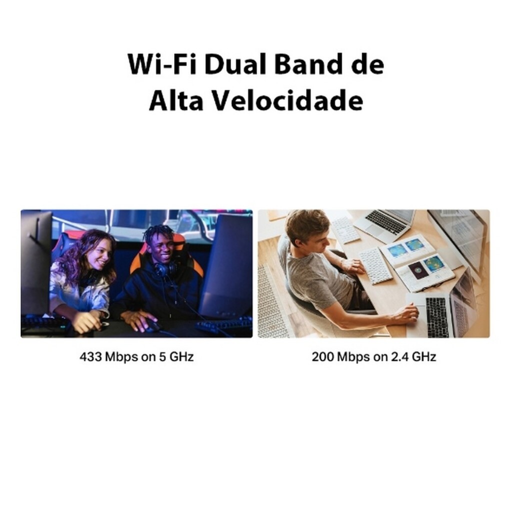 - Velocidade Wi-Fi Dual Band - Velocidades de até 433 Mbps (5 GHz) + 200 Mbps (2.4 GHz)1