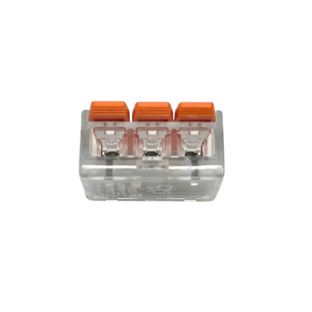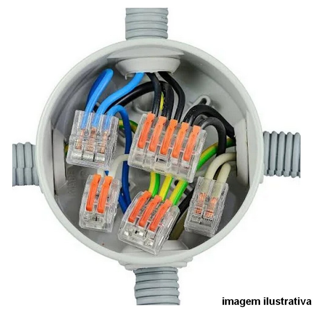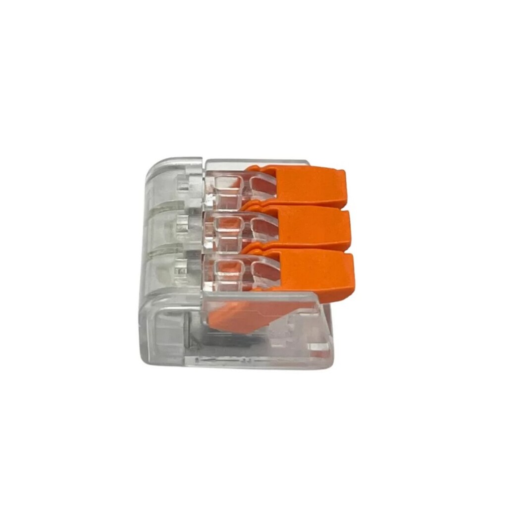 Conector para emenda e derivação em fiação elétrica, Borne com alavanca para instalação rápida e segura, Corpo na cor Transparente Cristal que facilita a visualização dos fios já inseridos