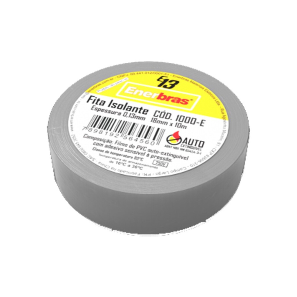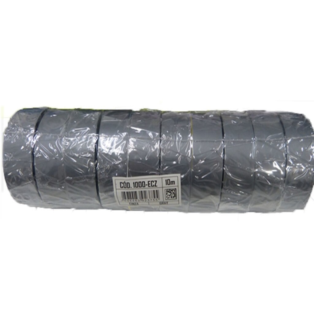 Fita Isolante Autoextinguível Enerbras 10 Metros Cinza - Pacote com 10 Fitas Isolantes - 1000-ECZ - 142010