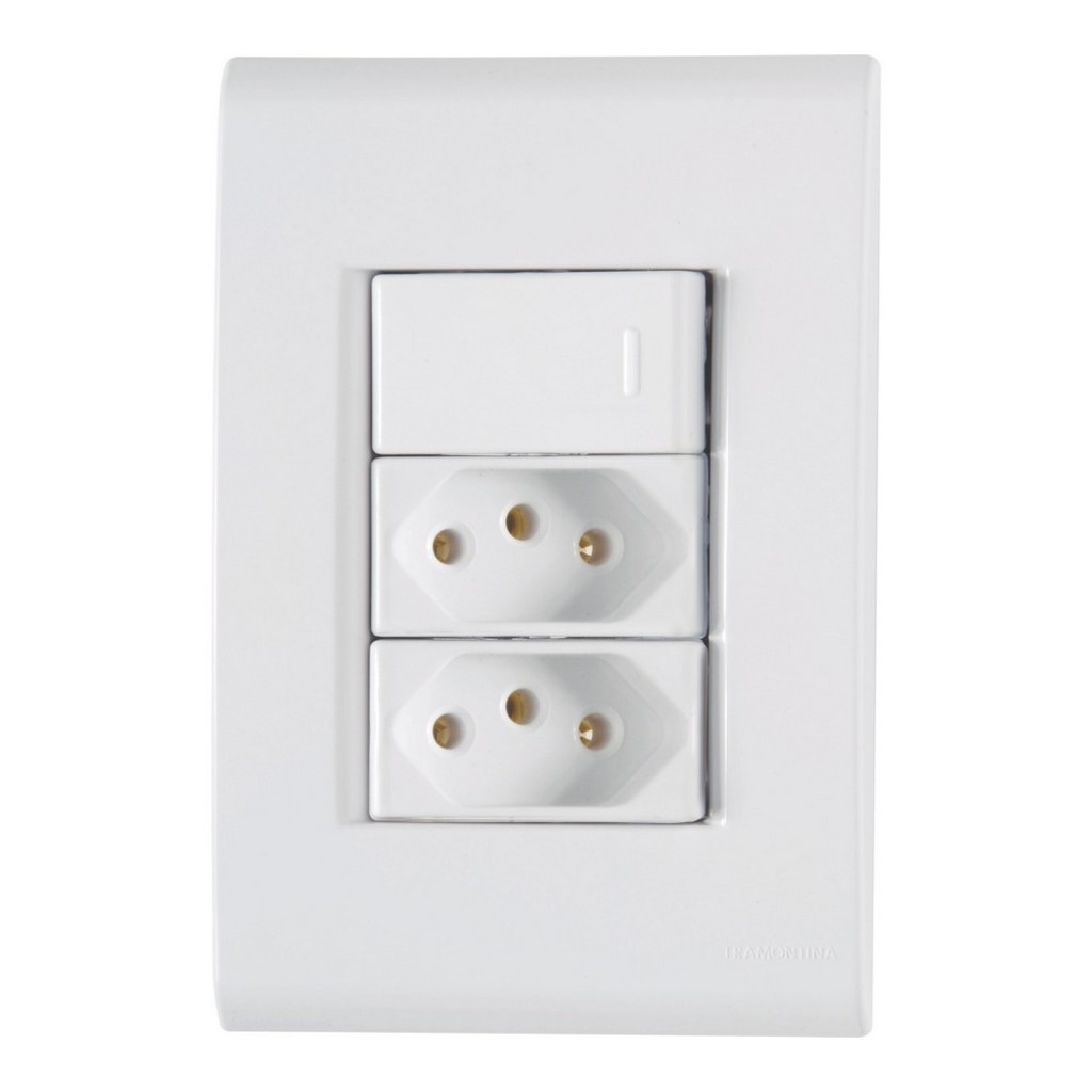 - Conjunto. 4X2 - 1 interruptor simples 10A 250V~ + 2 tomadas 2P+T 20A 250V Cód. 57170086