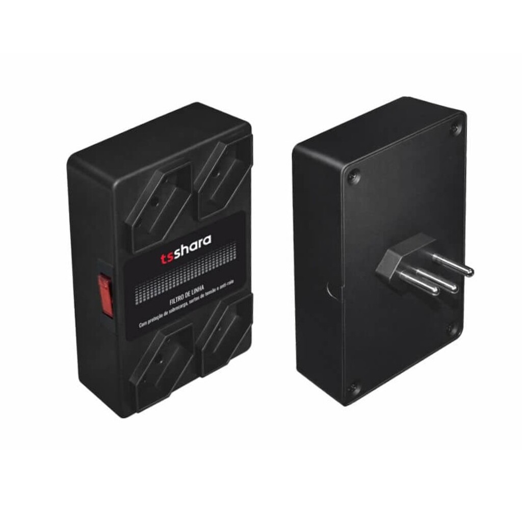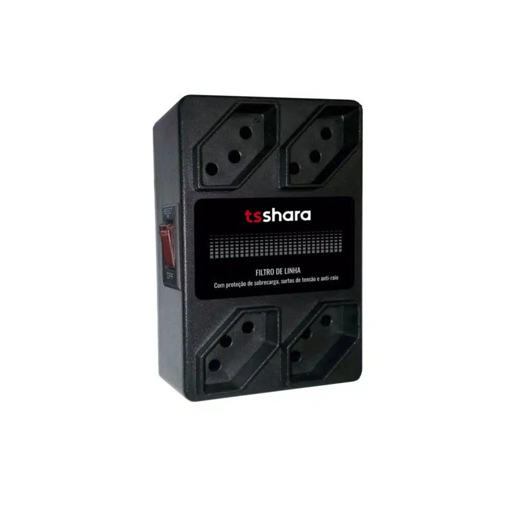 Filtro de Linha TS Shara com 4 Tomadas 3 Pinos 10A Preto Anti-Raio - 598