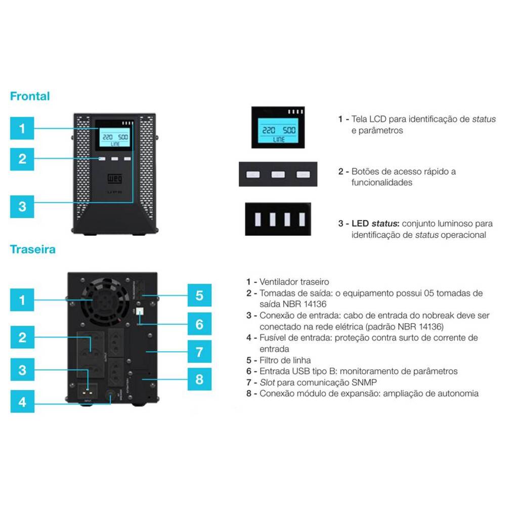 - O nobreak WEG Studio, disponível na potência de 1000VA, garante eficiência e proteção em ambientes residenciais, comerciais ou corporativos.