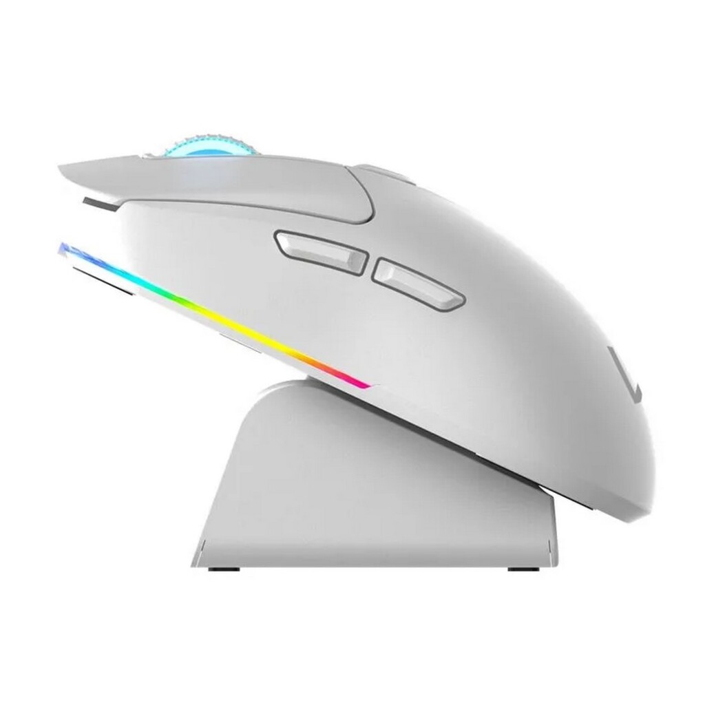 Mouse Sem Fio Gamer Magnus Warrior MO422 10000 Dpi Acompanha base Carregadora Branco com Led RGB