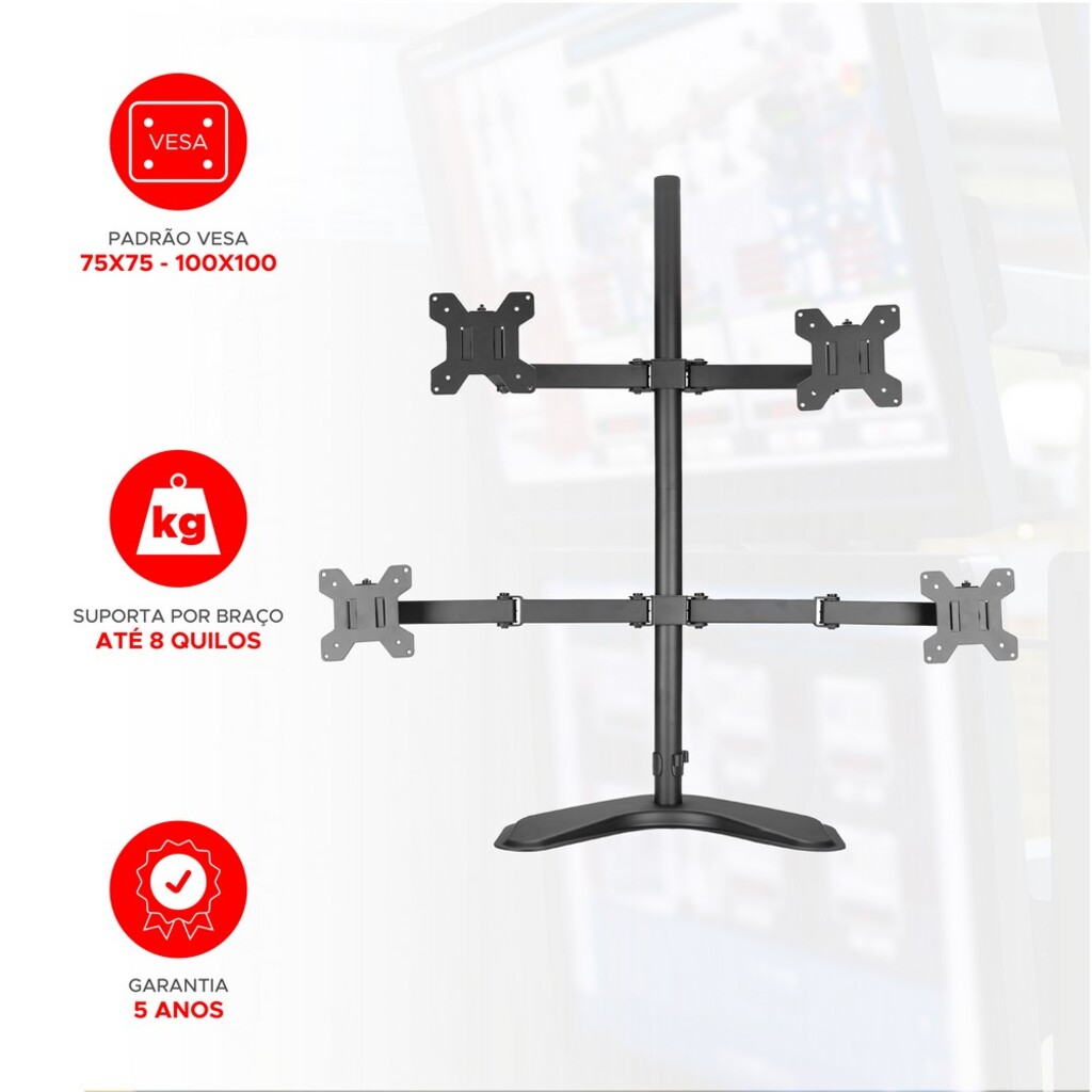 Suporte para Monitor Quadruplo Articulado 10 à 32 Polegadas PIX - 079-0085