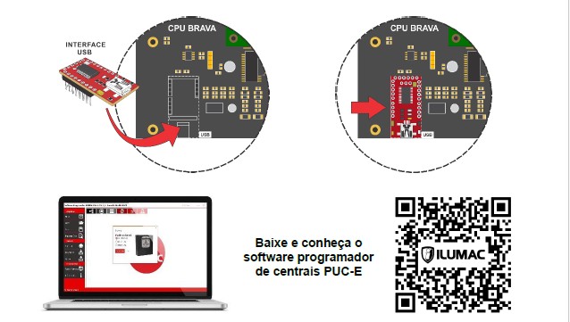 PROGRAMAÇÃO VIA USBPara facilitar ainda mais o momento de instalação, agora é possível configurar a central BRAVA através de um notebook/desktop, utilizando o software PUC-E da ILUMAC, na versão 2.15 ou superior.