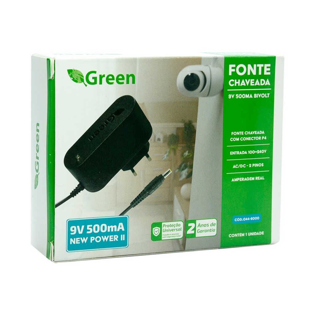- A fonte chaveada 9V-500mA New Power ll da Green é perfeita para quem busca segurança e eficiência