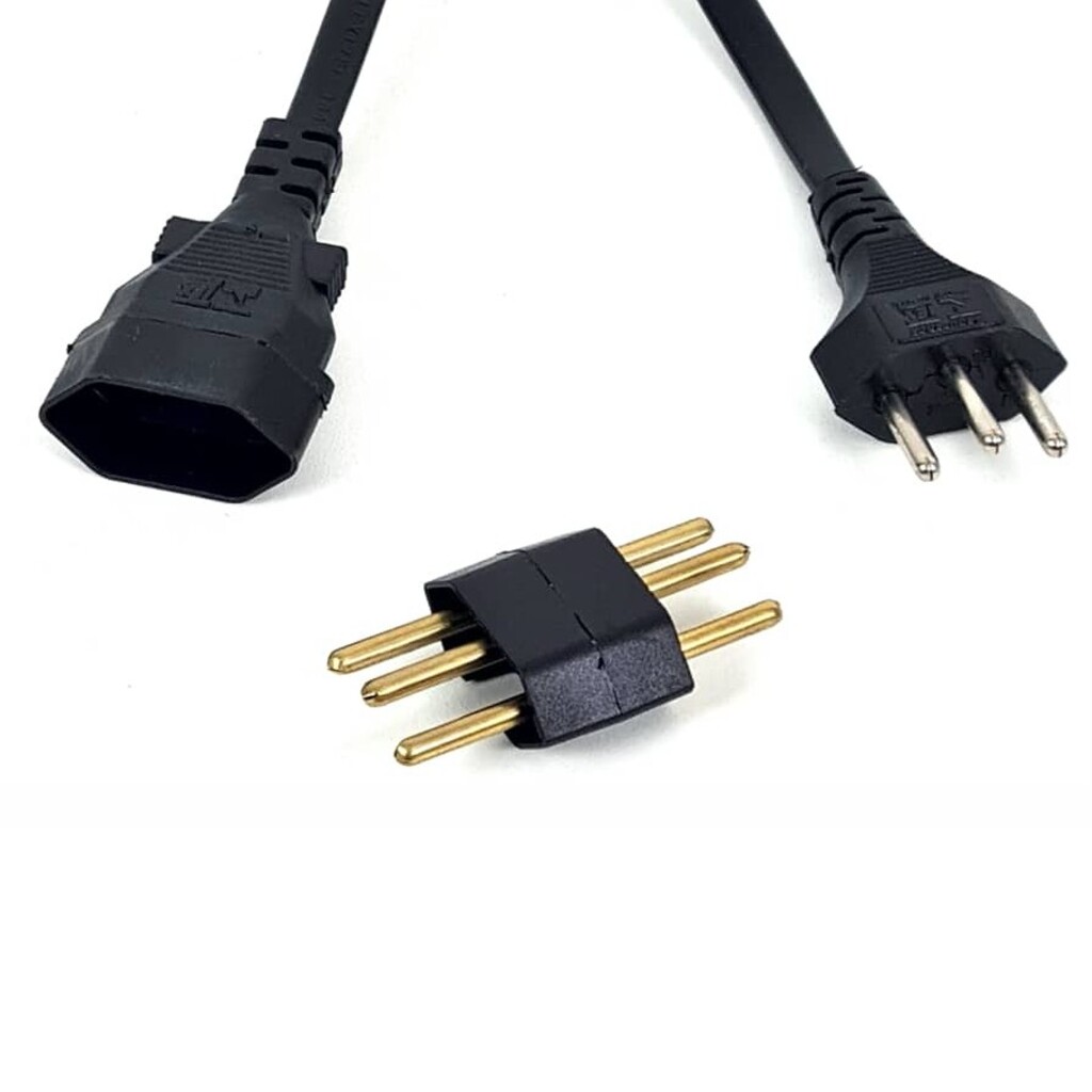 - O equipamento possui tomadas tripolares padrão NBR 14136 e acompanha adaptador H para proteção do usuário na conexão dos cabos.