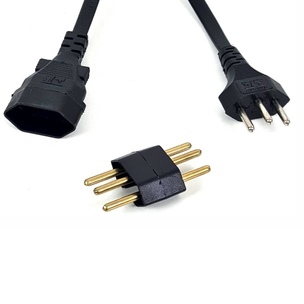 - O equipamento possui tomadas tripolares padrão NBR 14136 e acompanha adaptador “H” para proteção do usuário na conexão dos cabos.