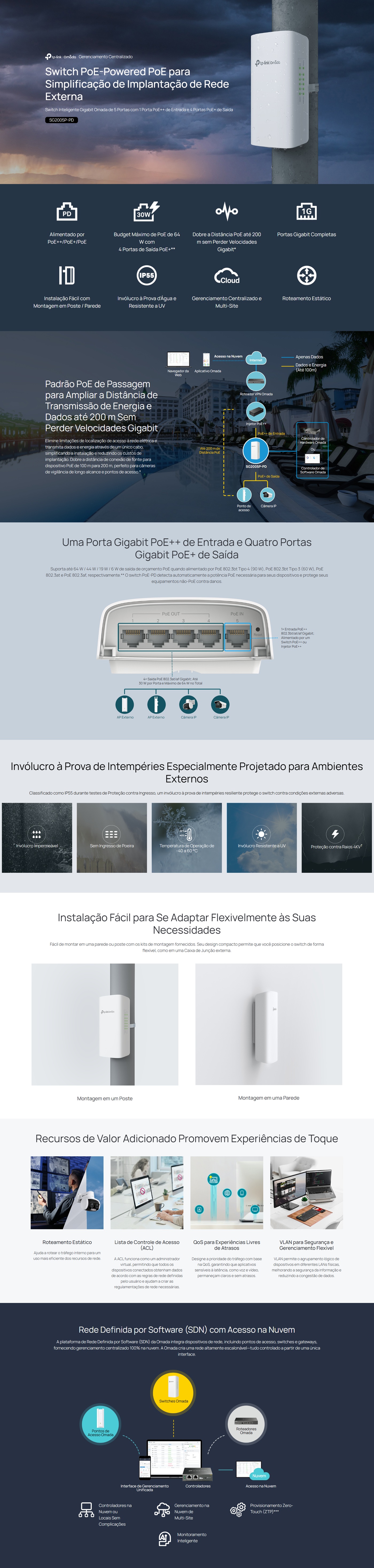 - Gerenciamento Centralizado na Nuvem: Integra-se ao Omada SDN para acesso na nuvem, gerenciamento remoto e gerenciamento de vários locais.